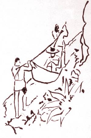 não é caminhar, é trepar de pés e de mãos, aferrados às raízes das árvores; não é caminhando que se faz a maior parte da viagem; é de rostos sobre as