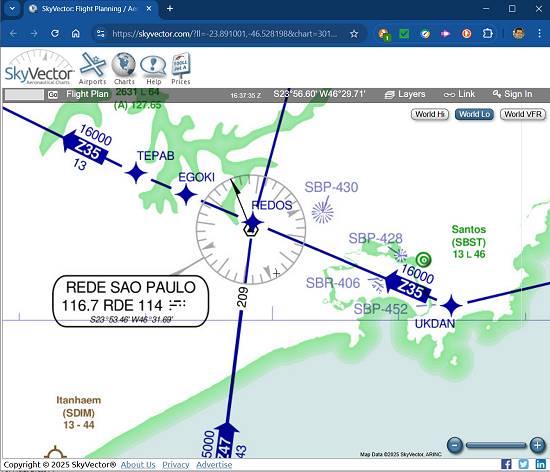 Carta Aeronáutica em SkyVector com a estação VOR-DME na Serra do Mar