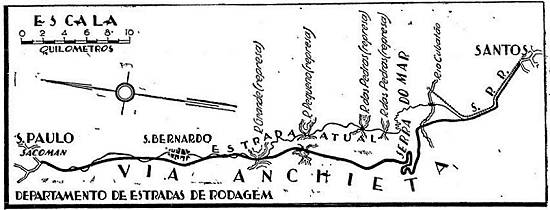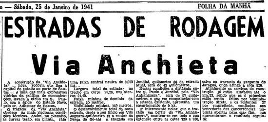 A construção da "Via Anchieta" – nova rodovia que liga a capital do Estado ao porto de Santos – é uma das mais expressivas vitórias da política de comunicações, levada a efeito em S. Paulo, sob a égide do Estado Novo, pelo sr. Adhemar de Barros.