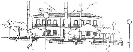 vapor de sódio, amarelas, darão realce à Casa de Câmara e Cadeia, que será circundada por jardim gramado. As calçadas serão alargadas, tanto na