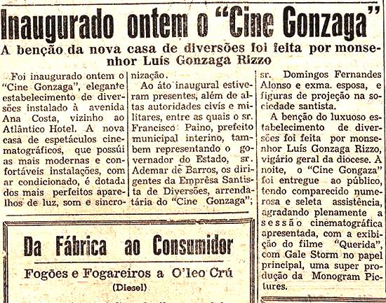 “Vizinho ao Atlântico Hotel”, o Cine Gonzaga foi instalado em 28/3/1947