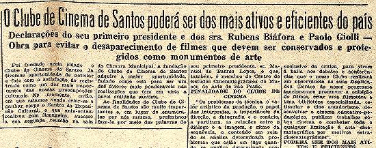 Paulo Giolli, diretor do Centro de Estudos Cinematográficos do Museu de Arte de São Paulo, que também participou da cerimônia de fundação do Clube de Cinema, declarou então acreditar que com o interesse santista e de outras cidades brasileiras pelo cineclubismo, "dentro em breve o Brasil poderá ter um movimento de cultura cinematográfica, senão igual ao da Europa ou da América do Norte, pelo menos à altura do que já se faz em Montevidéu e Buenos Aires".