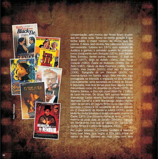 Texto publicado na revista Depois da Cena, produzida pelo jornal A Tribuna para distribuição ao final de espetáculos culturais, edição 2/ano 2, distribuída em 30 de abril de 2009, páginas 56 e 59: