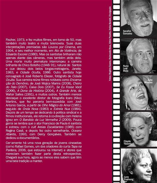 Mas os santistas brilharam não apenas diante das câmeras, mas também atrás delas. Uma morte muito prematura interrompeu a carreira brilhante de Chico Botelho (1948-91), natural de Santos e que deixou dois belos longas-metragens, Janete, 1983, e Cidade Oculta, 1986.