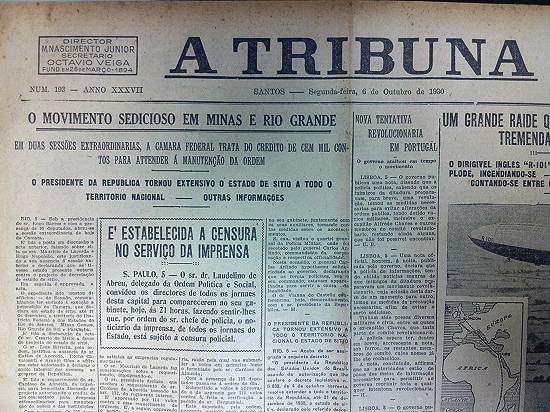 Já no princípio daquele mês, era decidida a censura à imprensa. A Tribuna noticiou, na primeira página de sua edição de segunda-feira, 6 de outubro de 1930, que "É ESTABELECIDA A CENSURA NO SERVIÇO DA