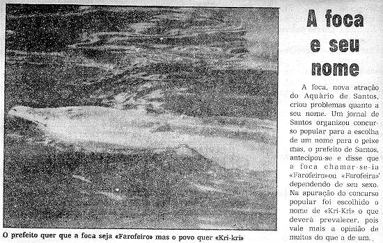 nomeando a foca que fora doada ao município, e chegou a publicar matéria redacional com sabor irônico, principalmente pela dimensão que o alcaide