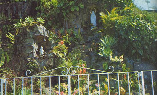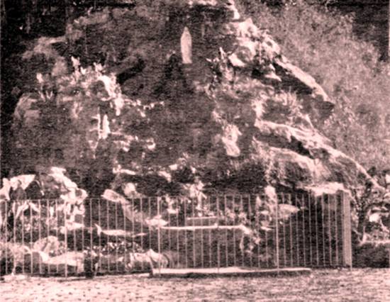 trilhos da Estrada de Ferro Sorocabana, reprodução fidelíssima da Gruta de Mossabielli. Esse lugar votivo foi promoção da família Horácio Ferreira