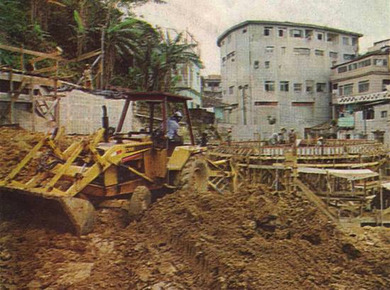 Prefeitura de Santos realiza na Rua São Luiz, estão na fase de construção das fôrmas para armação de pilares, vigas e lajes de concreto. Os