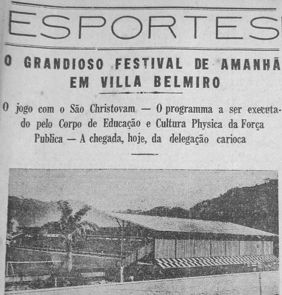Para esse festival está organizado um magnífico e atraente programa, pois, além da parte futebolística, já de si grandemente atrativa - visto tratar-se dum jogo interestadual, medindo forças o alvinegro e o S. Cristóvão, deve-se destacar a parte saliente e inédita, em Santos, que está reservada ao brilhante Corpo de Educação e Cultura Física da Força Pública do Estado, que, composto de cinqüenta homens, executará um belíssimo programa, oferecendo ao público um espetáculo maravilhoso, para provar a destreza, a elegância e precisão com que são levados a efeito todos os exercícios pelo esbelto grupo de verdadeiros atletas da brava milícia paulista.