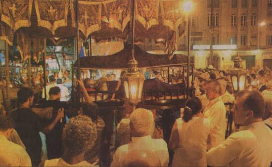 do cais, conduzindo o esquife com a imagem do Senhor Morto.