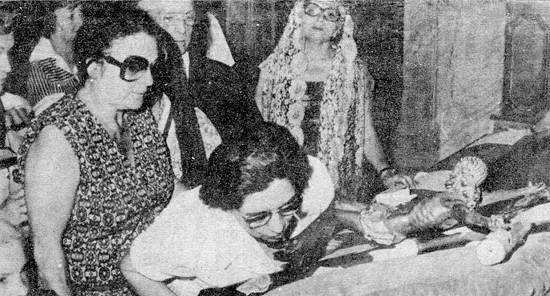 pendeu a salvação do mundo. Vinde. Adoremos". Com este canto, a imagem de Cristo crucificado (esculpida em madeira, no