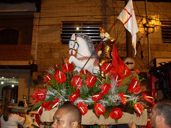 No dia dedicado a São Jorge, ocorre anualmente em Santos uma procissão em sua homenagem, como esta, realizada em 28 de setembro de 2008, das 19 às 21 horas, na Igreja São Jorge Mártir (situada na Praça Rubens Ferreira Martins, 41, perto da Avenida Afonso Pena, no bairro do Estuário) - fotos enviadas a Novo Milênio pelo professor de História e pesquisador Francisco Carballa: