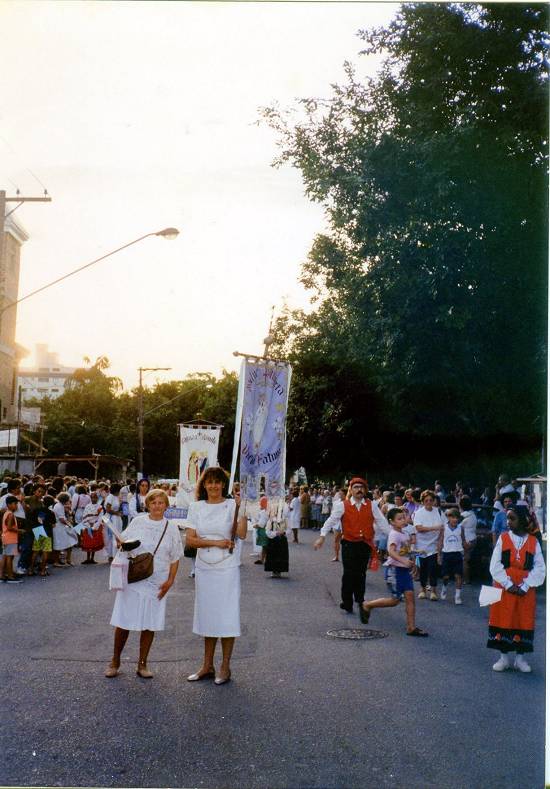 Rosa Domingues - filha de fona Filomena, nascida em 1943, brasileira de coração português, sempre fazendo adereços devotos para a procissão, como dois corações vermelhos