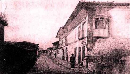 Antiga Rua Direita, hoje XV de Novembro, em aquarela do inglês Burchell, de 1825