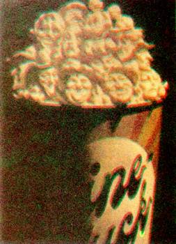 perto, percebe-se que cada pipoca tem a forma de um rosto famoso do cinema |