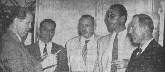 Radiantes por virem para o Brasil - Nossa reportagem encontrou a bordo o sr. Jurandir Fernandes Leal, funcionário da Inspetoria Estadual de Imigração, que nos apresentou aos srs. Emilio Stalder, Carlos Riedel, representante do prefeito de Itapetininga, e Edouard Brugger, chanceler do consulado da Suíça em S. Paulo, que vieram receber os viajantes, e os quais nos serviram de intérpretes junto aos imigrantes, que falam todos apenas o alemão, língua falada na Suíça.