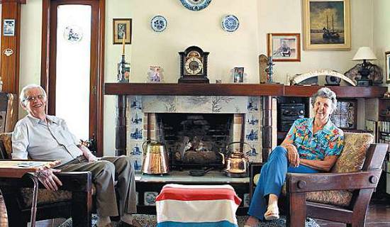 Uma casa holandesa – Enquanto a vida do lado de fora transcorre no abrasante calor tropical, a sala de Johanna Horn Laan, de 72 anos, e Thomas Van Der Laan, 79, é ornada por uma lareira ao estilo holandês, com as bordas decoradas por azulejos brancos pintados à mão, em azul.