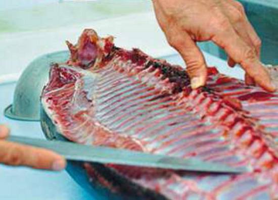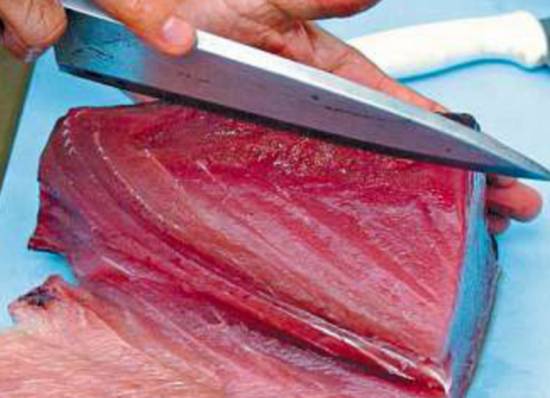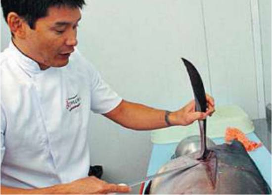 Com o peixe fresco e limpo, o corte da carne para sushi e sashimi tem de ser cirúrgico. Para o sushi, por exemplo, um atum de quase 30 quilos exige incisões de quatro dedos, ao longo do comprimento, de cima a baixo. Esses blocos, depois, são cortados no sentido contrário ao das fibras aparentes. "É para ele ficar macio e desmanchar na boca, como na carne de boi".