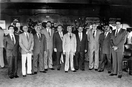 23/1/1990, os presidentes Francisco Zacharias de Lima (E), Ary Panse, Daniel Zechini, Nívio Janeiro, José Pereira de Almeida, Roberto Ekres, Affonso
