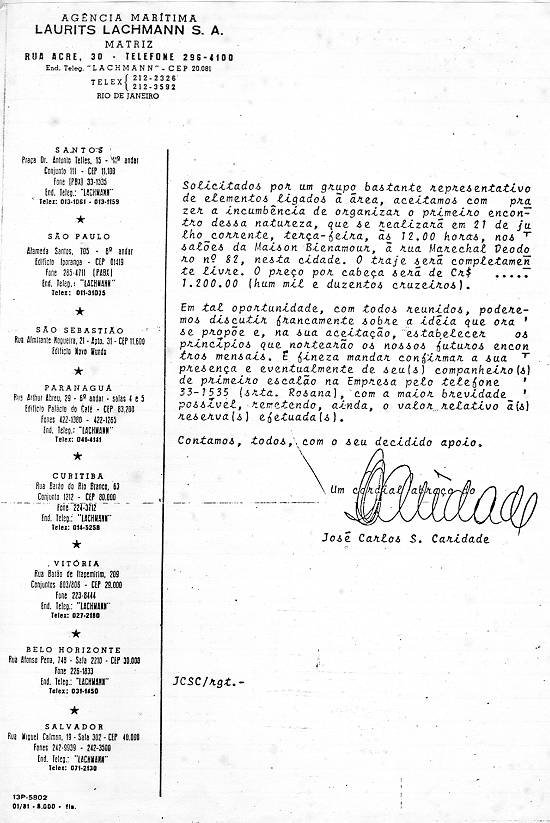 convidando para a reunião que formaria o Clube do Leme, em 1981