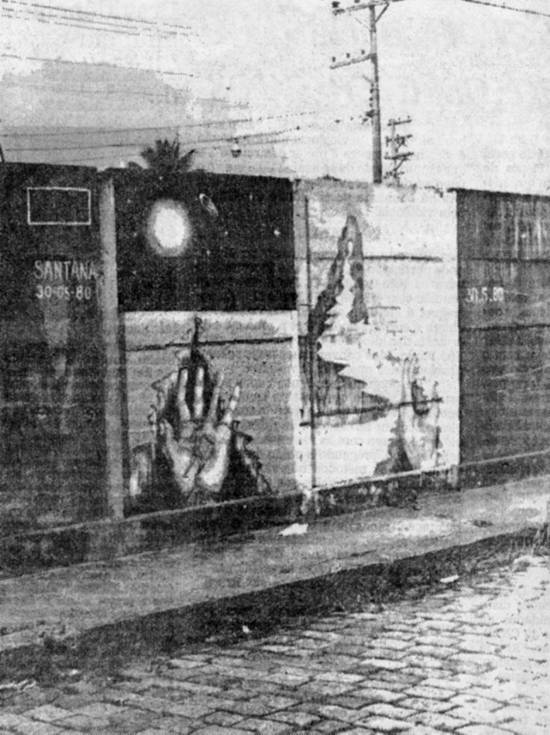 tela o muro da ferrovia da Fepasa, no trecho defronte do nº 52 da Rua Marquês de São Vicente. O convite, está sendo feito pelos pintores a todos os