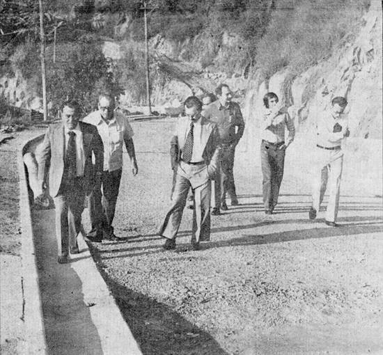 inspecionam as obras da Avenida Brasil na subida do Morro do Marapé, em junho de 1978