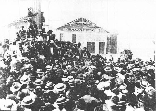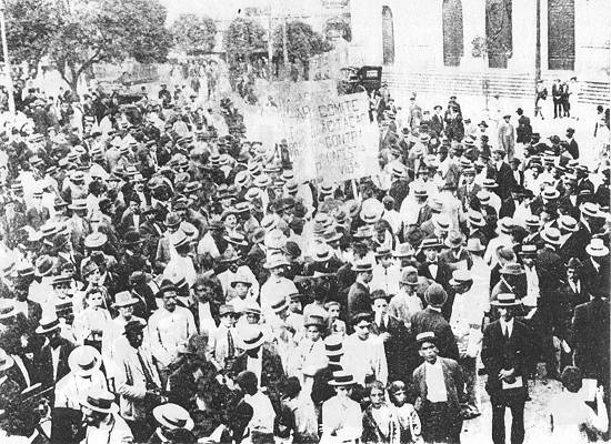 em razão da chegada de grande contingente de imigrantes ibéricos, fortemente politizados, participantes ativos da corrente do anarco-sindicalismo.