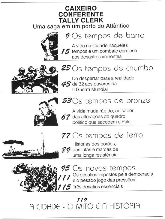 Com 144 páginas e ilustrações (registros CDD - 331.879816 - M433c), o livro inclui ainda textos de Marcos Augusto Ferreira e fotos de Carlos Nogueira, dos arquivos do Sindicato dos Conferentes de Santos e do Departamento de Comunicação da Prefeitura. Esta primeira edição digital, por Novo Milênio, foi autorizada em 19/2/2010 por Paulo Matos.