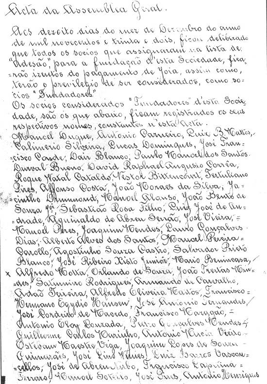 Foi ali mesmo, no dia 18 de dezembro, que fizeram a assembléia de fundação e elegeram a primeira diretoria da nova entidade. Também ali, no dia 4 de janeiro de 1933, se faz a posse solene.
