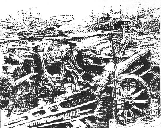 Depois de calados os canhões na Europa, o mundo está cansado de horrores. A destruição é uma herança pesada (bico-de-pena de Pagé)