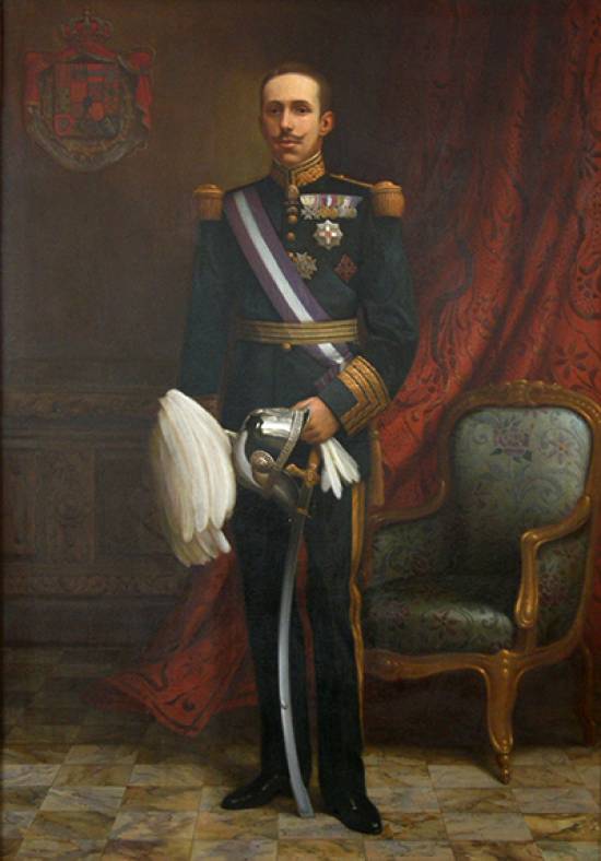 desconhecido, com 147x230 cm, produzida em meados do século XX, mostrando aquele rei espanhol. "O soberano aparece representado num retrato de