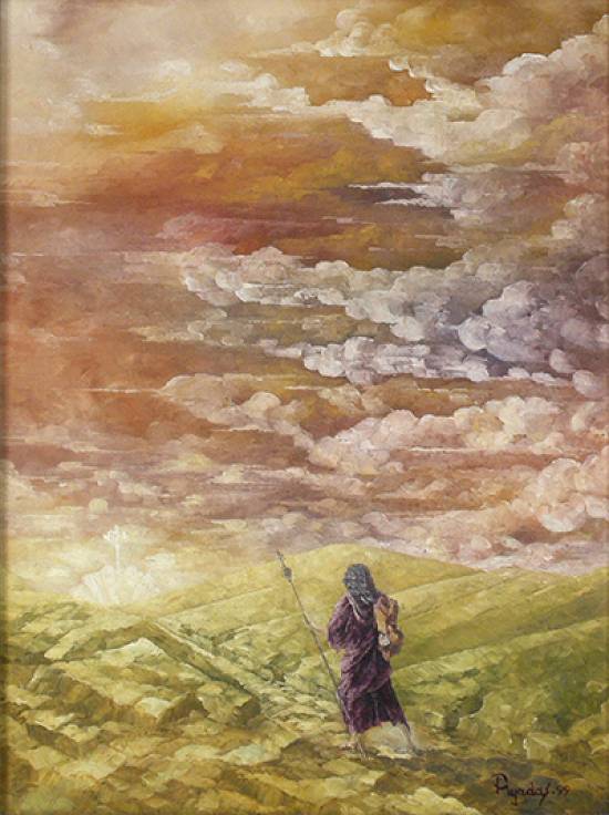 Jacinto Pujadas Soler, com 80x60 cm. No reverso da obra há a mensagem "Alusão ao Caminho de Santiago chegando ao seu destino"
