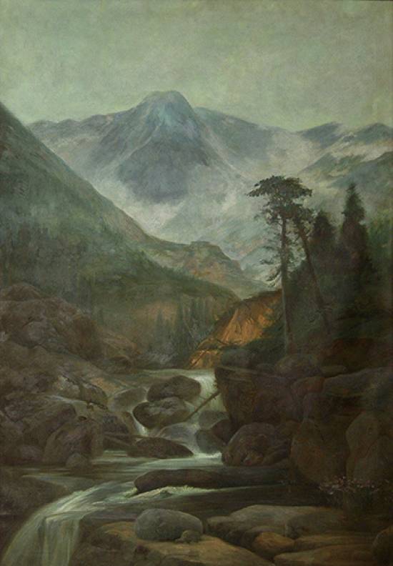 Antonio Fernández, na primeira metade do século XX, com 122x175 cm. "Paisagem idílica. Representa um vale com maciço montanhoso ao fundo. A luz é