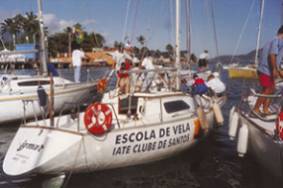 Instalações no Guarujá e a embarcação da Escola de Vela