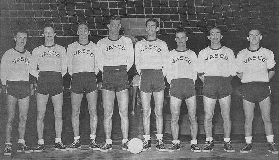 Equipe de vôlei do Clube de Regatas Vasco da Gama, vice-campeã de 1944 do Torneio Santista da modalidade. Da esquerda para direita, Walter