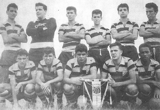Importadora Chaves e Mello Ltda., situada na Rua Amador Bueno, Santos. Na foto, de 1958, o time era composto por Nico, Roberto, Moreira, Damaceno,