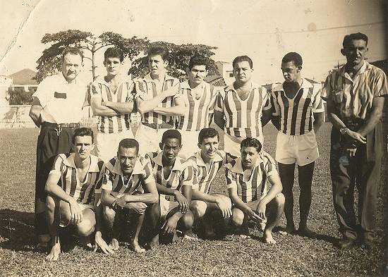 O time era formado por: em pé: sr. Augusto (comerciante do bairro, de camisa branca), Maneco, Edmir, Sansão, Fiorio, Ferreirinha e sr. Oscar Possatti (o técnico, de calça comprida);