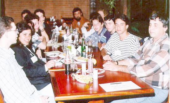 Primeira reunião do grupo. Na extrema direita, o Amílcar Brunazo Filho (Kika) saiu na foto de olhos fechados, o que deu motivo a uma das primeiras gozações do clube, que criou o concurso de imagens alteradas em computador "Acorda o Kika"