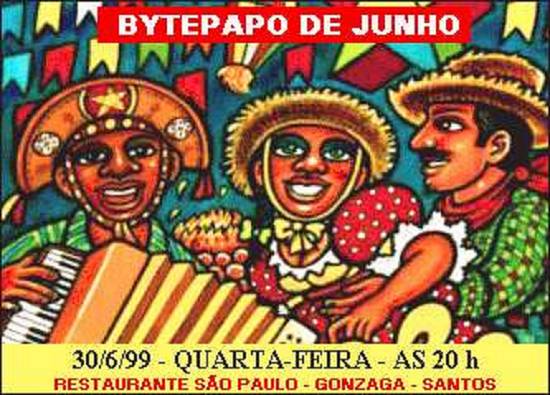 Com a participação de 235 internautas e um show da banda Jornal do Brasil, de Julinho Bittencourt - que incluiu até a canção Pela Internet, de Gilberto Gil -, o Byte Papo comemorou dia 18 seu primeiro aniversário. Esse encontro informal de internautas da Baixada Santista vem sendo realizado desde setembro de 1996, e a próxima reunião, como vem acontecendo nos últimos meses, já está marcada para a terceira terça-feira de outubro (dia 21), no Bar do 3 (Av. Washington Luiz, 422, Canal 3), a partir das 20h33.