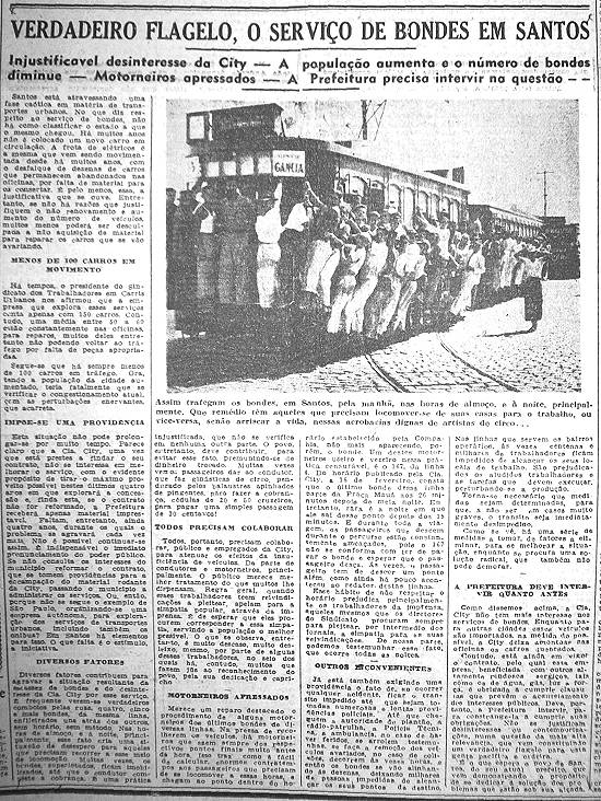 Ao final da década de 40, a cidade de Santos passa a viver num caos, em matéria de transporte coletivo. A imprensa local criticava veementemente o descaso da Cia. City com relação ao serviço de bondes.