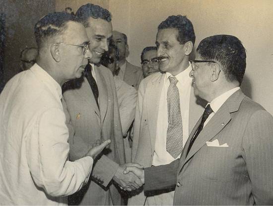 Dirigentes da Rebratel conferem equipamentos da empresa, em 1957