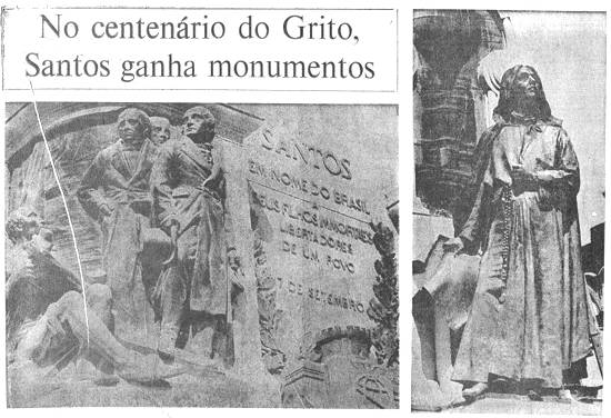 Na sua edição especial de 7 de setembro de 1972, comemorativa do sesquicentenário da Independência do Brasil - exemplar no acervo do historiador Waldir Rueda -, o jornal santista A Tribuna publicou esta matéria: