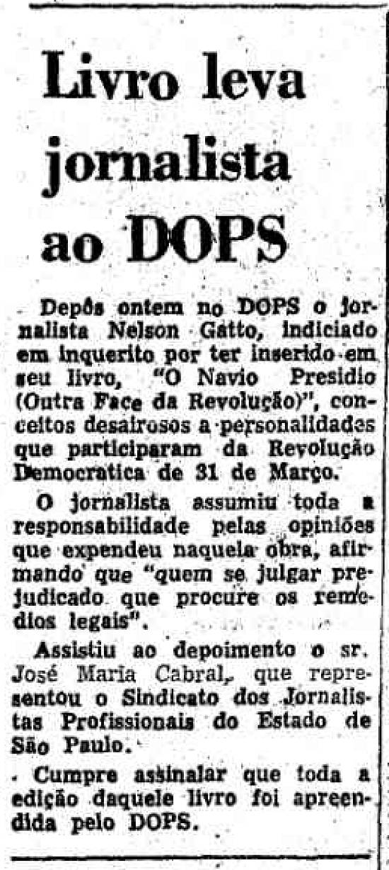 Santos, do capitão dos portos, do advogado João Bernardes da Silva, de um cinegrafista de televisão, de um fotógrafo dos "Diários Associados" e de