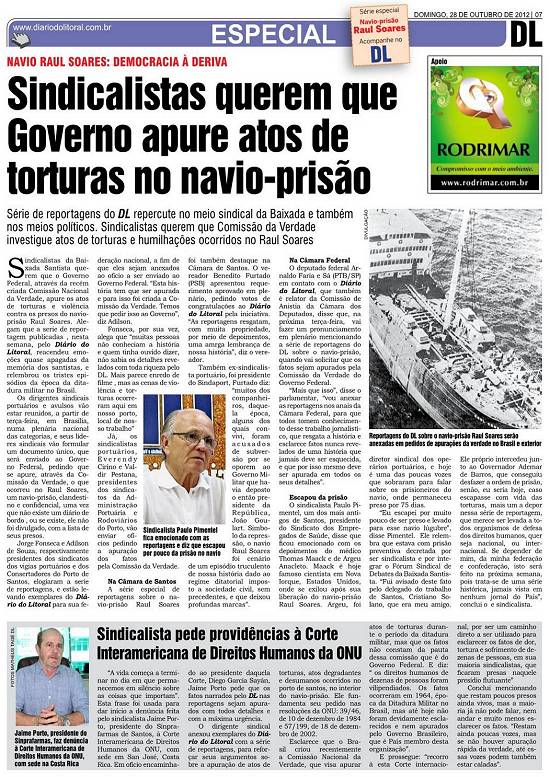 e dos Consertadores do Porto de Santos, elogiaram a série de reportagens, e estão levando exemplares do Diário do Litoral para sua federação