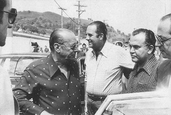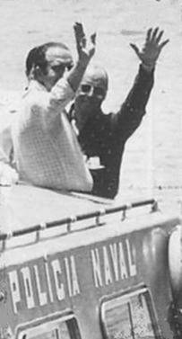 Chegando pela Via Anchieta, foi recebido no Saboó (defronte ao cemitério da Filosofia) pelo então prefeito (interventor) de Santos, Antônio Manuel de Carvalho, junto com o governador Paulo Egídio Martins, o secretário de Segurança Pública de São Paulo, coronel Antônio Erasmo Dias e outras autoridades.