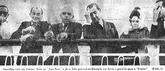 Juscelino está em Santos. Veio no Ana Neri e já se fala que vai ao Guarujá ver Jânio e puxá-lo para a "Frente"