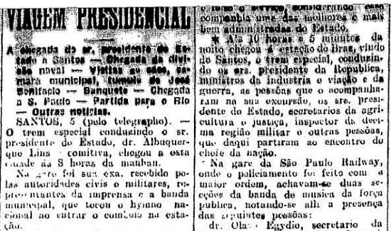 S. excia. foi recebido com as maiores demonstrações de apreço não só em Santos como nesta capital.