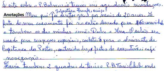 Trecho das anotações de Elizabetha enviadas a Novo Milênio