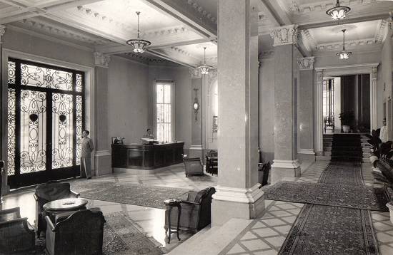 A recepção do hotel, em 1949