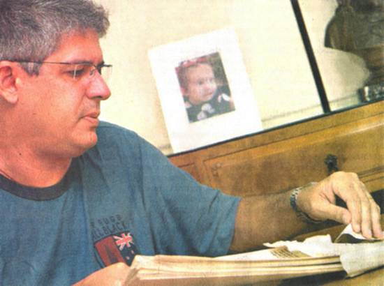 Foto e legenda publicadas com a matéria, na primeira página do jornal, em 9/5/2010